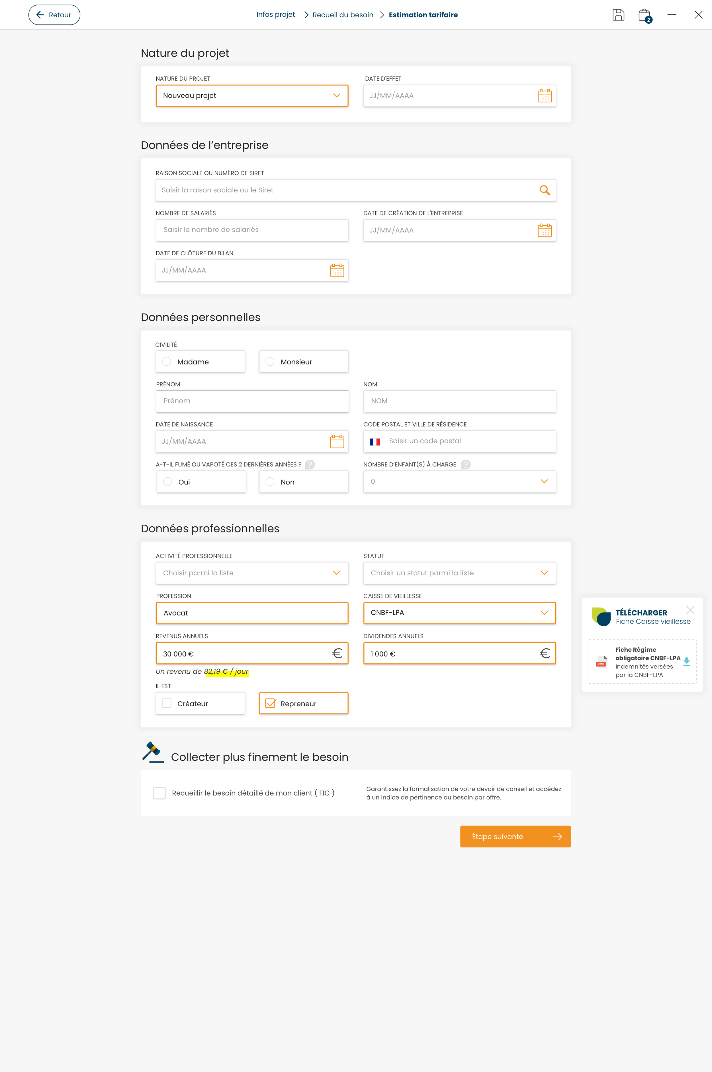 Création d’une plateforme multimarque et multimarché qui permet au courtier de réaliser un recueil du besoin de son client complet, et l’ensemble du parcours de vente d’un produit d’assurance ( du devis à la signature du contrat).