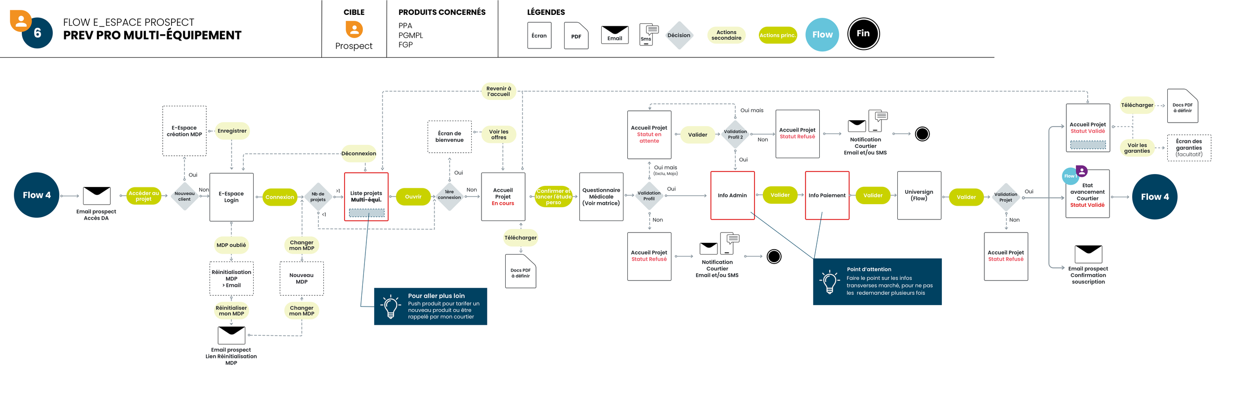 ✺ L’un des plus gros enjeux du projet sera de faire fonctionner sur la même plateforme 4 marchés différents, avec un nombre importants de produit chacun. Ne pas complexifier le parcours Mono-équipement, et simplifier un parcours Multi-marché pour les courtiers.