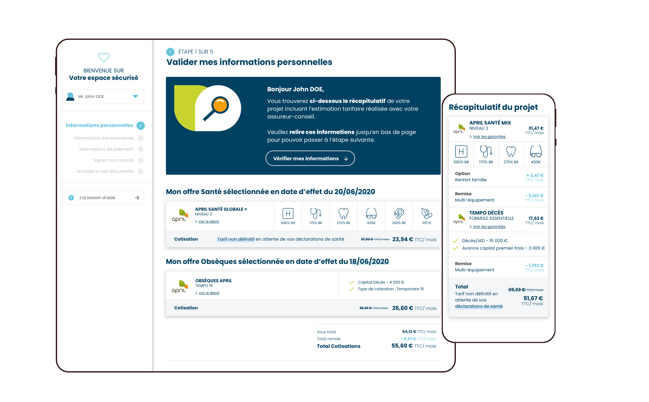 Création d’un espace assuré intuitif, et vulgarisation des garanties assurances pour les rendre compréhensible à l’utilisateur